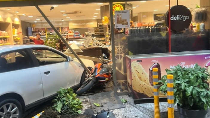 34 BJB 921 plakalı Audi marka otomobil sürücüsü, market kapısının önünde başında kaskı ile bekleyen motorcunun üstüne bile bile aracı sürerek ezmeye çalıştı.