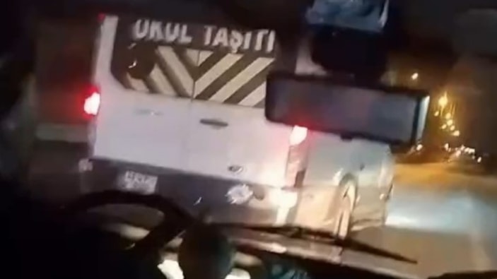 Görüntüde servis minibüslerinin otomobilin önüne kırdığı, otomobil içindeki panik anları yer aldı.