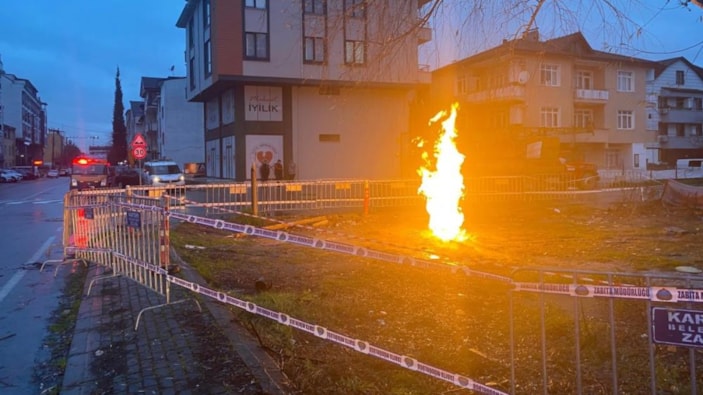 Kocaeli'de yer altından çıkan metan gazı alev aldı