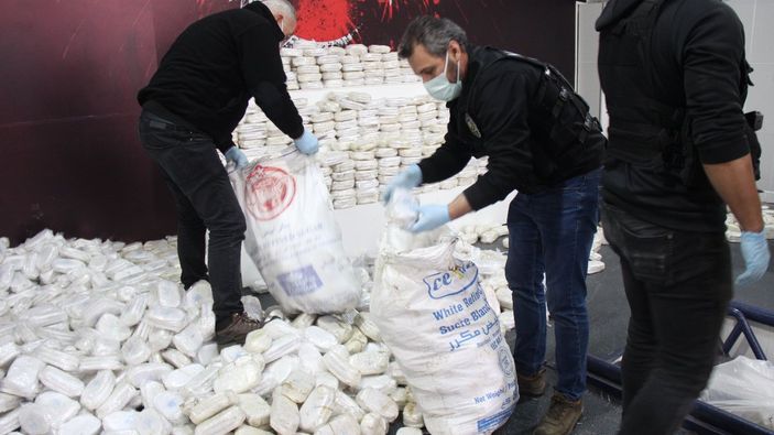 Kocaeli’de bulunan bir limana yanaşan gemiye düzenlenen operasyonda, 119 şeker çuvalı içerisinde 3 ton 860 kilo esrar, 99 bin adet uyuşturucu hap ele geçirildi.