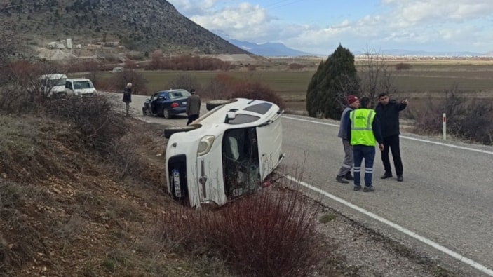 Çarpışmanın etkisi ile hafif ticari araç yol kenarına devrildi.