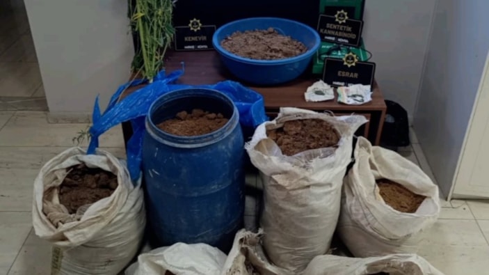 E.B. isimli şahsın adresine yapılan baskında ise 65 kök kenevir bitkisi, 2 parça halinde 8,11 gram esrar, 141 bin gram sentetik kannabinoid ve 1 adet hassas terazi bulundu. E.B. hakkında 2313 SKM, TCK 191 ve TCK 188 kapsamında işlem yapılarak adliyeye sevk edildi.