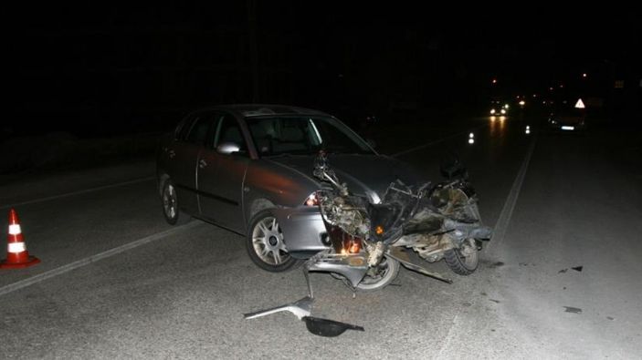 Konya Kulu Devlet Hastanesi yakınlarda, Mehmet Ö. yönetimindeki 42 GE 401 plakalı otomobil ile Ahmed A. idaresindeki plakasız motosiklet çarpıştı.