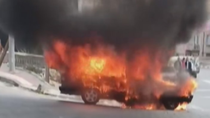 Alevlerin adeta yuttuğu aracın içinde bulunan sürücü Karayılan, aracı durdurup, inip uzaklaştı.