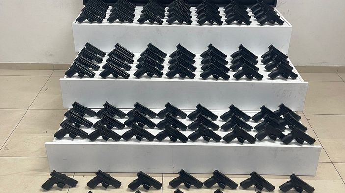 Ekiplerce bir araçta yapılan aramada, 100 ruhsatsız tabanca ve bu silahlara ait şarjörler ele geçirildi.