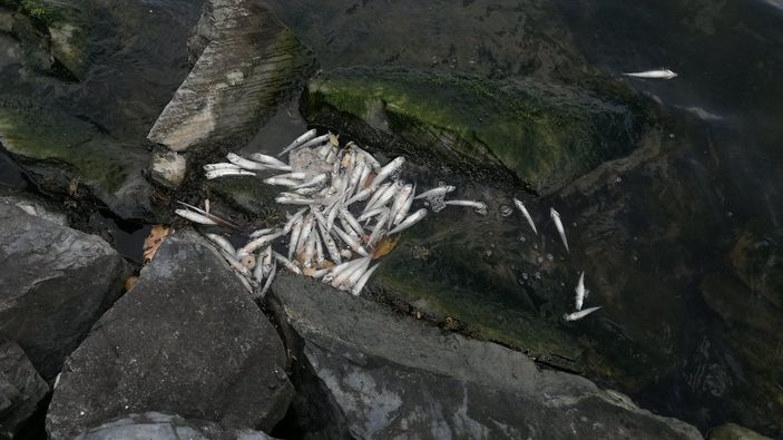 Yüzlerce ölü balığın kıyıya vurmasıyla bölgeyi kötü kokular sardı. 3 gün önce başlayan balık ölümleri, vatandaşlarda endişeye neden oldu.