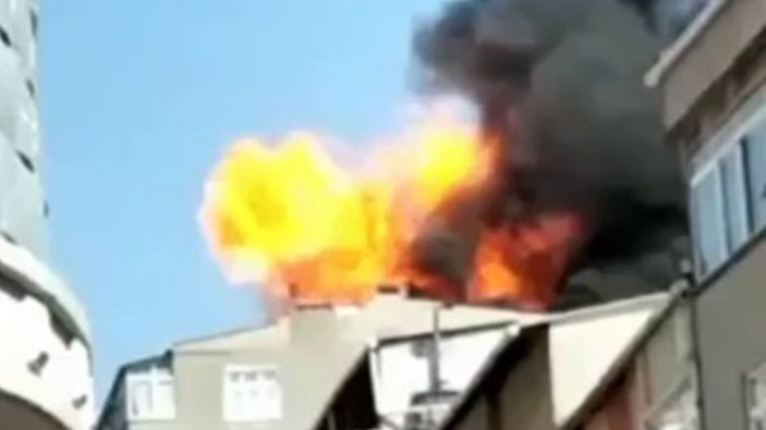 Küçükçekmece'de binanın çatı katında çıkan yangında patlama oldu: Dehşet anları kamerada