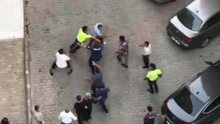 Bu sırada ikisi trafik polisi olmak üzere dört polis, kavgayı ayırmak üzere müdahalede bulundu.