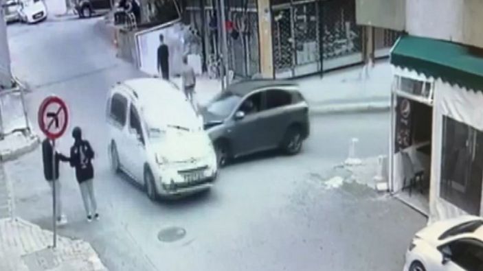 İstanbul Küçükçekmece'nin Kanarya Mahallesi’ndeki sokağın kesiştiği noktada, hafif ticari araç otomobile çarptı.