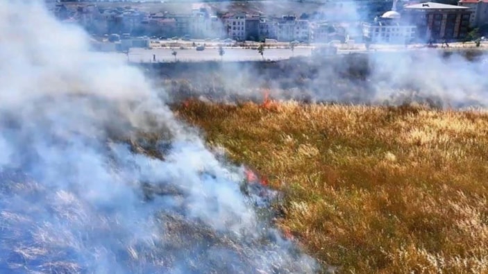 Küçükçekmece'de otluk alanda yangın