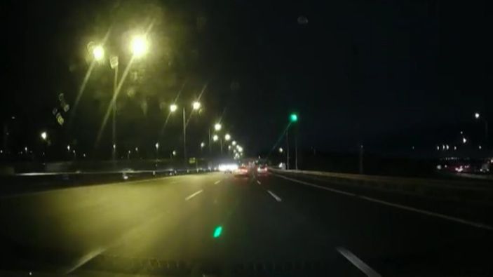 Kuzey Çevre Otoyolu'nda görülen yeşil ışık sürücüleri tedirgin ediyor VİDEO