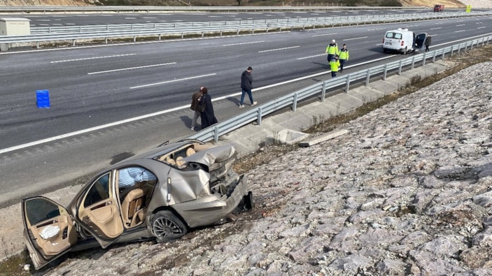 Kuzey Marmara Otoyolu'nun Kocaeli geçişinde otomobil ve panelvan araç çarpıştı. 2 kişinin yaralandığı kazada otomobil, çarpmanın şiddetiyle istinat duvarına çıktı.