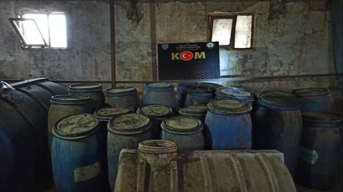 Yapılan operasyonda, 3 bin 610 litre içki hammaddesi, 30 litre el yapımı boğma rakı, 48 litre içime hazır el yapımı boğma rakı olmak üzere toplamda 3 bin 688 litre el yapımı boğma rakı ele geçirilirken, 2 şüpheli hakkında "5607 SKM" kapsamında yasal işlem yapıldı.
