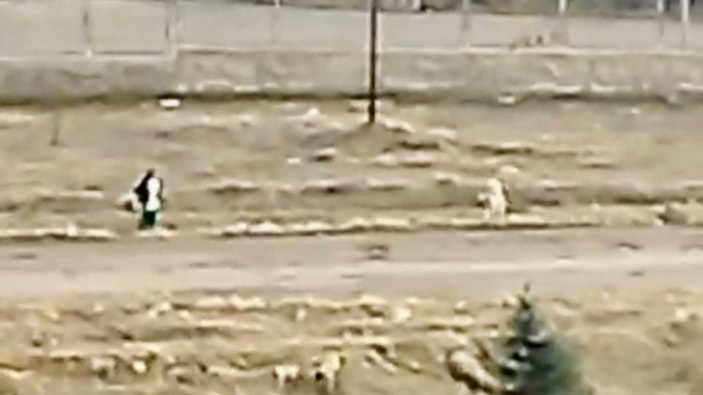 Kayda alınan görüntülerde, araziden geçmeye çalışan bir çocuğun sokak köpeklerinin saldırısına uğradığı ve elindeki çuval parçası ile köpeklerin saldırısından kurtulmaya çalıştığı görülürken, çocuğun yardımına ise çevrede bulunan bir araç sürücüsü yetişti.