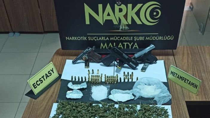 Adreste yapılan aramada 890 gram skunk maddesi, 64 gram metamfetamin, 71 yeşil reçeteye tabi hap, 4 uyuşturucu hap, 37 kapsül halinde 34 gram sentetik esrar, 3 ruhsatsız tabanca ve bu silahlara ait 63 mermi ile 2 Fetullahçı Terör Örgütüne ait hakkında toplanma kararı bulunan kitap ele geçirildi.