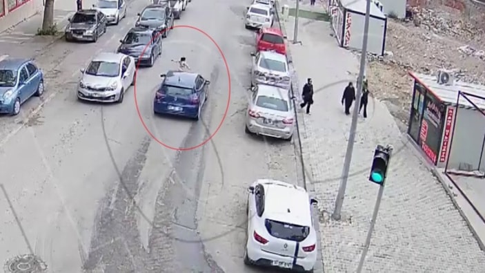Kent merkezinde yolun karşısına geçmeye çalışan küçük bir çocuğa otomobil çarptı. Aracın çocuğun üzerinde geçtiği kaza anı ise kameraya yansıdı.