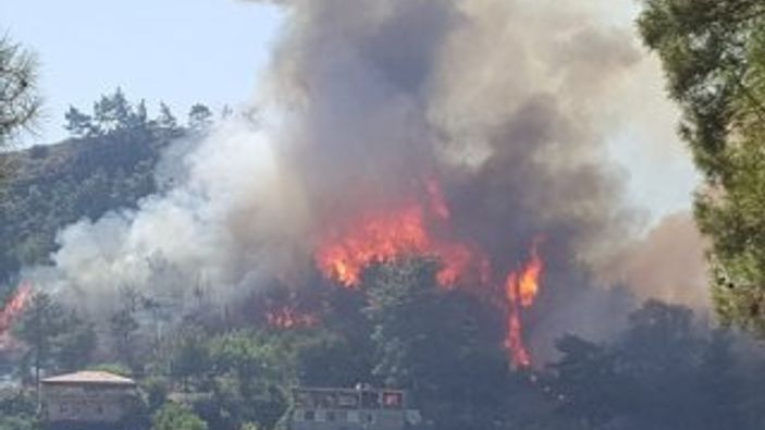 Antalya’nın Manavgat ilçesinde çıkan yangına, itfaiye ekipleri müdahale ediyor.
