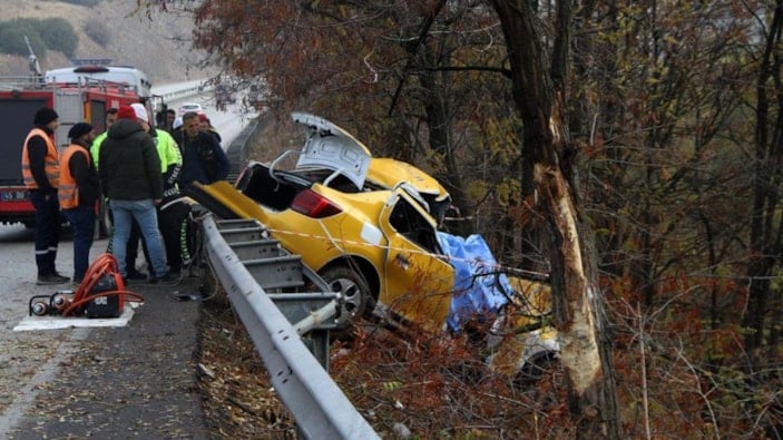 Bariyerleri aşarak ağaca çarpan taksideki yolcu koltuğunda oturan Oğuzhan Kermen hayatını kaybetti, sürücü Ahmet Eroğlu ise ağır yaralandı.