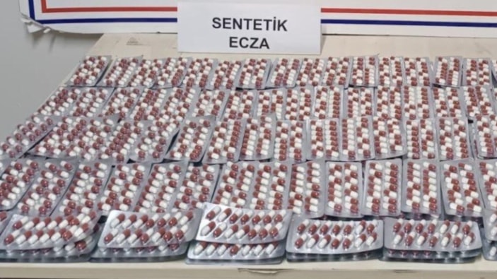 Araçta yapılan aramada 2 bin 671 adet sentetik ecza hap ele geçirildi.