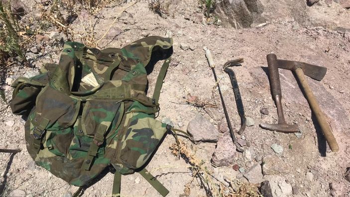 İsa Ç. (42), Abdul K.Ç. (34) isimli şahısların yanında 1 adet çanta, 1 adet kazma, 1 adet çekiç, 1 adet levye, 1 adet bıçak, 1 adet demir çubuk ve 3 adet inşaat eldiveni ele geçirildi. Şahıslar ve yanlarındaki malzemelerle birlikte kazı yapımı sonucunda araziden çıkarıldığı tespit edilen ve farklı motif ve şekillerde irili ufaklı toplamda 15 adet taş parçasının olduğu tespit edildi.