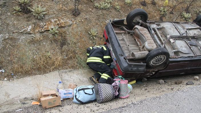 Manisa'da yağışlı havada kontrolden çıkan otomobil takla attı