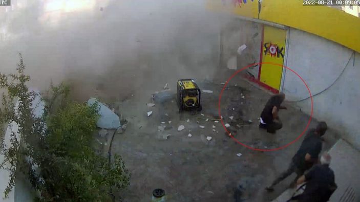 Görüntülerde; ilk kaza nedeniyle toplanan kalabalık, 2'nci tırın geldiğini fark edince can havliyle sağa sola kaçışmaya başlıyor. Bu sırada bir kadın, çocuğunun içinde olduğu bebek arabasıyla kendini 1 metre yüksekliğindeki kaldırımdan atıyor. Kucağında bebeği olan kadınlar oluşan toz bulutunun arasından kaçarken, bazı vatandaşlar da yaralıları kucaklayarak hastaneye yetiştirmeye çalışıyor.