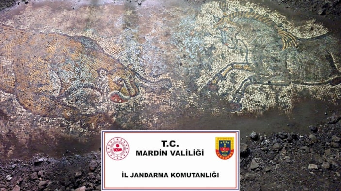Mardin’de jandarma, tarihi eser kaçakçılarına satılmak üzere olan 1500 yıllık figürlü taban mozaiğini ele geçirdi.