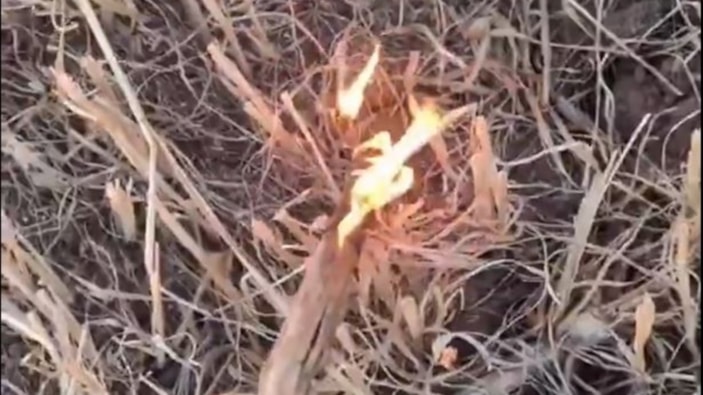 Elindeki çubuk ile anız yakarak görüntüleri sosyal medyada ‘Koskocaman tarlayı çubukla yaktık’ notuyla paylaşan 15 yaşındaki F.G., jandarma ekipleri tarafından gözaltına alındı.