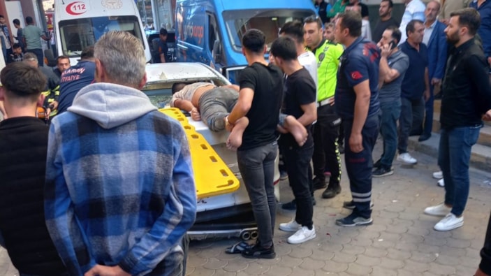 Çarpmanın etkisiyle savrulan Muhammed G., otomobilin arka camına çarptı.