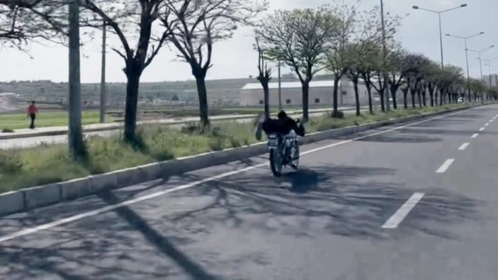 Görüntülerde, 3 gencin hız yaparken, 2 gencin ise motosikletin üstüne yatarak ilerlediği anlar net bir şekilde görülüyor.