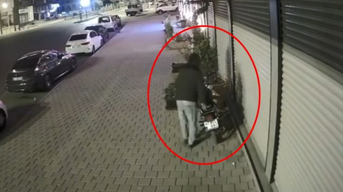 Mardin'in Midyat ilçesinde bulunan bir otelin yakınına park edilen Cemal Konak'a ait motosikletin yanına gelen kapüşonlu şüpheli bir süre bekledikten sonra motosikleti alıp götürdü.