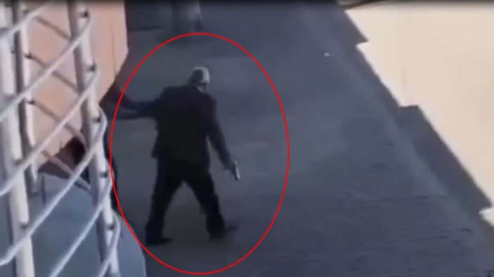 Görüntülerde çevredekilerin bağrışmaları ve elinde tabanca bulunan şüphelinin bir süre bekledikten sonra otomobiline binerek uzaklaşması yer alıyor.