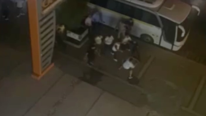 Görüntülerde 25-30 kişilik kalabalık bir grubun önce birbirlerine tekme tokat saldırdıkları, ardından kavgaya karışan 1 şahsın karşı tarafa yakın mesafeden silahla ateş ettiği ve karşı grubun da aynı şekilde silahla karşılık verdiği anlar yer aldı.