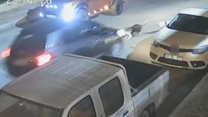 Öte yandan, aracın köpeklere çarptığı anlar kliniğin güvenlik kameralarınca anbean görüntülendi.