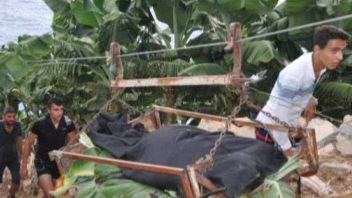 Cansız beden, sarp ve dik kayalıklar nedeniyle muz nakli için kullanılan teleferikle yaklaşık 350 metre yukarıdaki yolun bulunduğu bölüme taşındı.