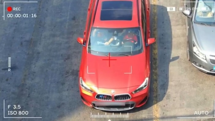 O anları havadan görüntüleyen polis, otomobili uygulama noktasında durdurdu.
