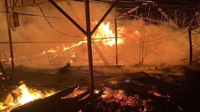 Mersin'de çiftlik yangını geceyi aydınlattı