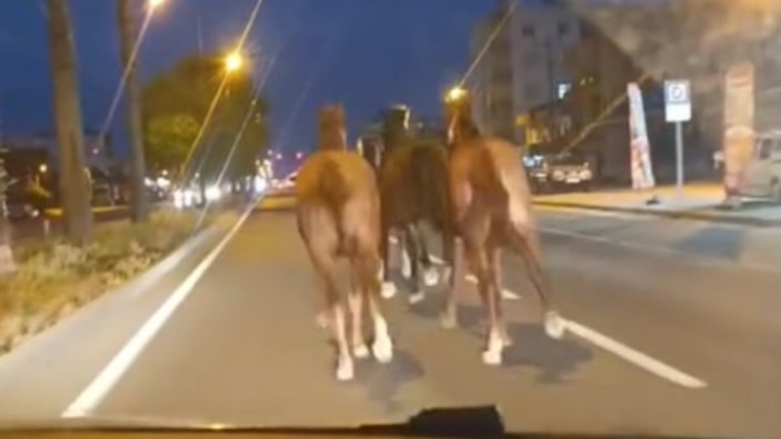 Araçların arasından da geçen atlar, çevredekiler tarafından cep telefonu kamerasıyla görüntülendi.
