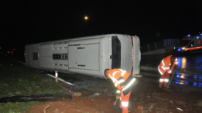 Mersin'de Akkuyu Nükleer Güç Santrali'nde çalışan işçileri taşıyan otobüsün devrilmesi sonucu 23 kişi yaralandı.