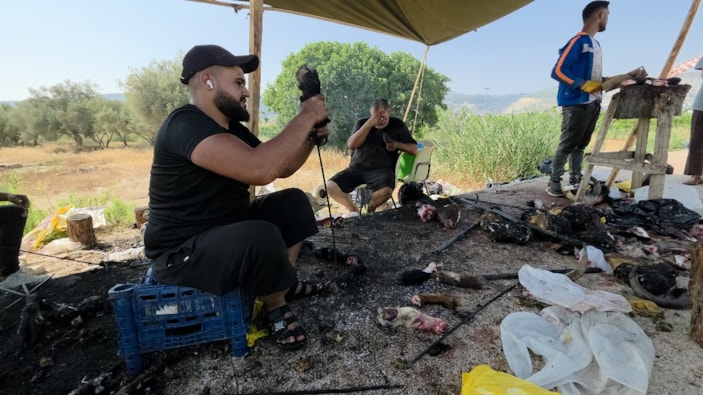 Silifke ilçesinde özellikle demirci ustaları, bayram sabahı kurbanlıklardan çıkan kelleleri ateşle üterek vatandaşa hizmet veriyor.