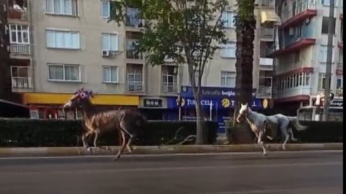 Gazi Mustafa Kemal Bulvarı üzerinde, trafik akışının ters yönünde koşan başıboş atlar tehlike oluşturdu.