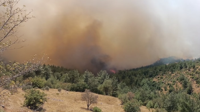 Ekiplerin, yangını kontrol altına almak için havadan ve karadan başlattığı çalışmalar sürüyor.
