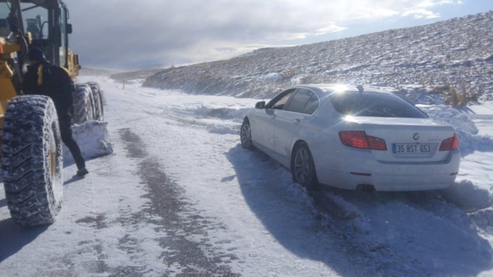 Güzeloluk Jandarma Komutanlığı ekipleri, araç ve iş makinesiyle bölgeye ulaşarak önce 3'ü çocuk 6 kişi kurtardı. Jandarma sonra da otomobili iş makinesi ile karlı ve buzlu bölgeden çıkardı.
