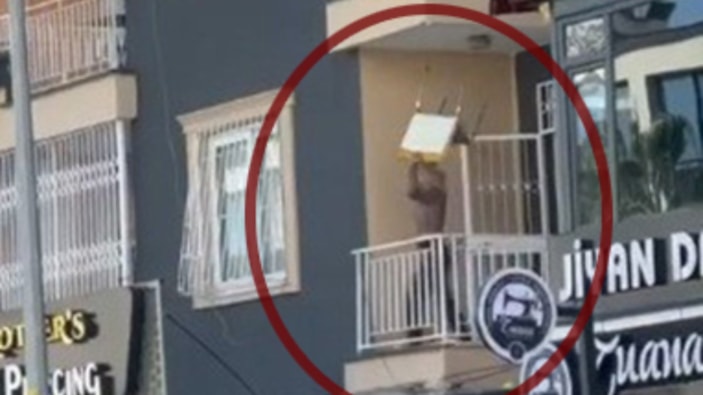 Mersin'de sinir krizi geçiren bir kadın evinin balkonundan sandalye, damacana ve mutfak eşyalarını sokağa fırlattı.