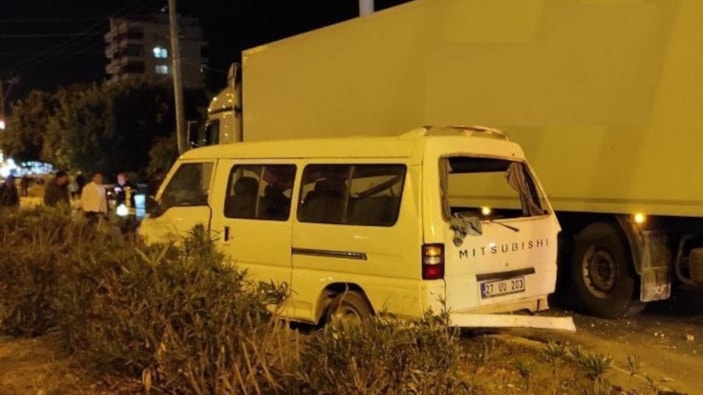 Mersin'in Erdemli ilçesi Limonlu Mahallesi D-400 kara yolunda H.Y. idaresindeki minibüs ile A.B. yönetimindeki tır çarpıştı.