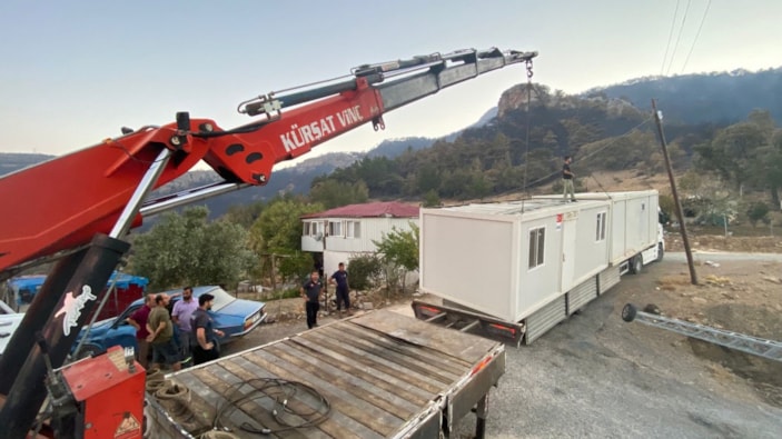 AFAD tarafından evleri yanan ve hasar alanlar için bölgeye 70 konteyner gönderildiği bildirildi.
