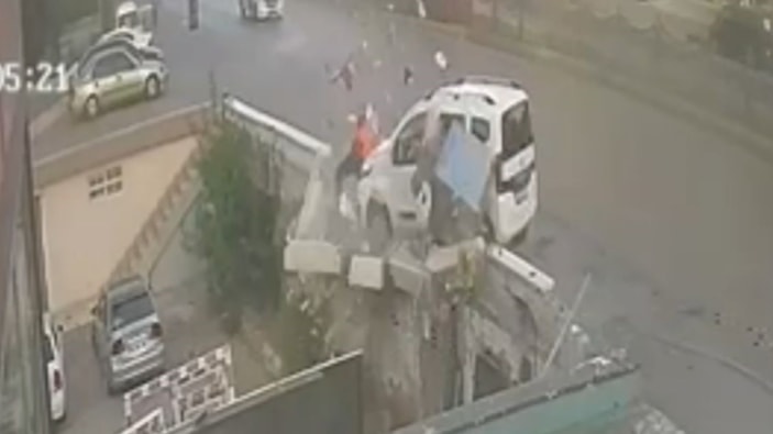 Ardından sürücüsünün kontrolünden çıkarak yol kenarındaki çöp konteyneri ile birlikte yaya olarak yürüyen 21 yaşındaki Beyza M.'ye (21) çarparak köprüden aşağı düşürdü.