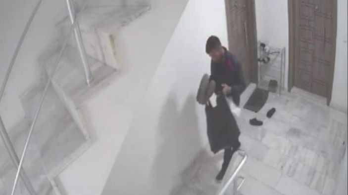 Görüntülerde, evlerin önündeki ayakkabıları siyah poşete dolduran şahıs, rahat tavırlarıyla dikkat çekiyor. Bütün apartmanı gezen şahıs, ardından hiçbir şey olmamış gibi ayakkabı dolu poşetle apartmandan çıkıyor.