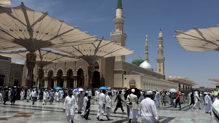Binlerce hacı, cuma namazını Medine'de Hazreti Muhammed'in ((s.a.v) yapımında çalıştığı ve kabrinin bulunduğu Mescid-i Nebevi'de kıldı.