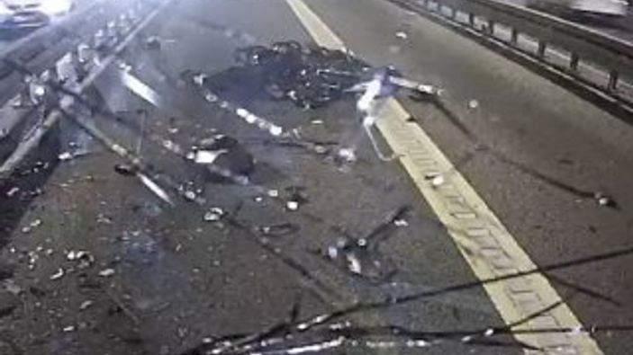 Şişli’de metrobüs yoluna giren motosikletli ile metrobüsün kafa kafaya çarpıştığı kazada, motosiklet sürücüsü hayatını kaybetti. Kaza anı metrobüsün kamerasına yansıdı.